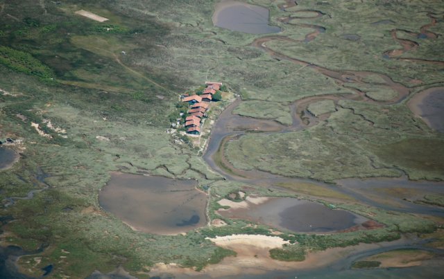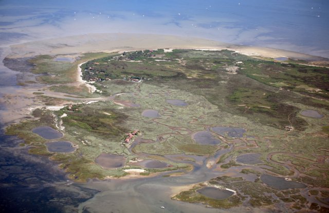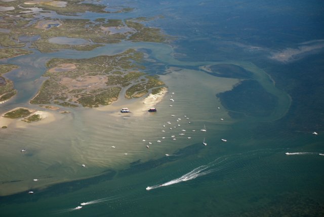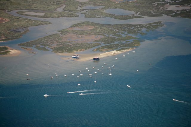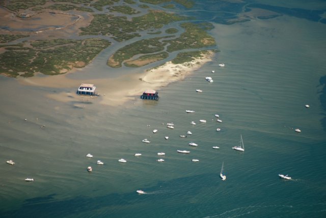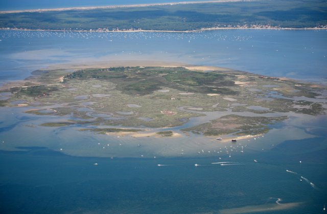 Une île au mileu du Bassin d'Arcachon avec d'anciennes cabanes d'ostréiculteurs et les célèbres "Cabane Tchanquées".