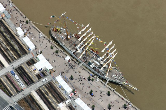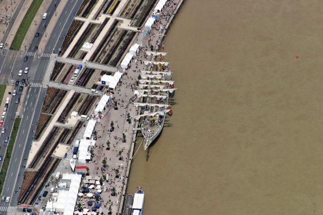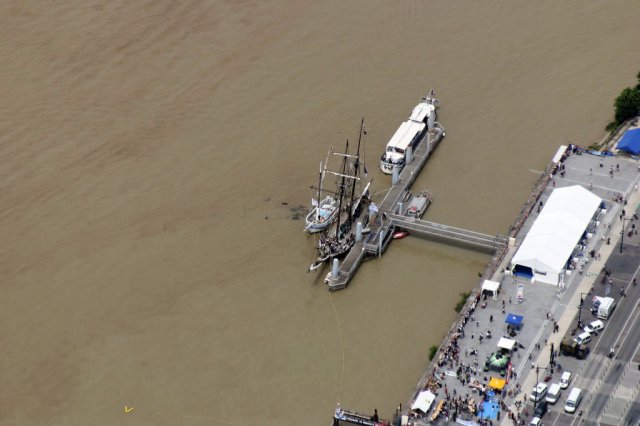 Vues aériennes de la manifestation avec la présences des grands voiliers, le Belem, le Cuauhtémoc et La Recouvrance.