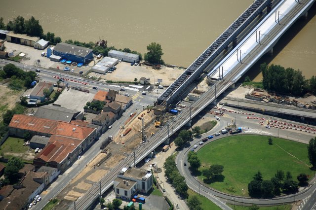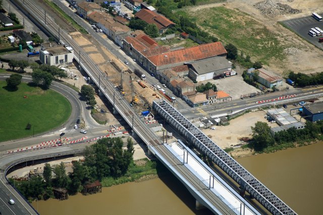 Les travaux de construction du nouveau pont SNCF de Bordeaux